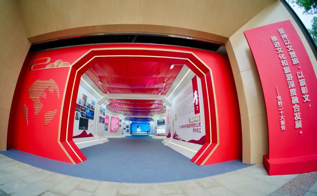 “堅持以文塑旅、以旅彰文,推進文化和旅游深度融合發(fā)展”。走進四川文化和旅游企業(yè)展館,黨的二十大報告中對文旅發(fā)展的要求便映入眼簾。通過設(shè)置“序、初心使命、奮斗征程、筑夢未來”四個部分,以圖文視頻、實物展陳相結(jié)合,輔以各項新科技手段的方式詳盡地向觀展賓客講述了其從無到有、從小到大、從弱到強、從優(yōu)到精的蛻變歷程。