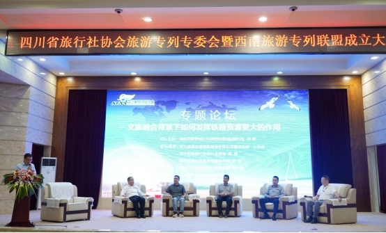 8月28日,由四川省旅行社協(xié)會、四川旅投航空旅游有限責任公司、四川成都鐵路國際商旅集團有限公司共同發(fā)起的旅游專列專業(yè)委員會暨西南旅游專列聯(lián)盟正式成立。四川旅投集團黨委副書記、副董事長、總經(jīng)理楊川,中鐵成都局集團黨委委員、董事、副總經(jīng)理徐涌出席成立大會并致辭。參加本次成立大會的代表包括省旅行社協(xié)會會員單位及相關合作單位約200家。