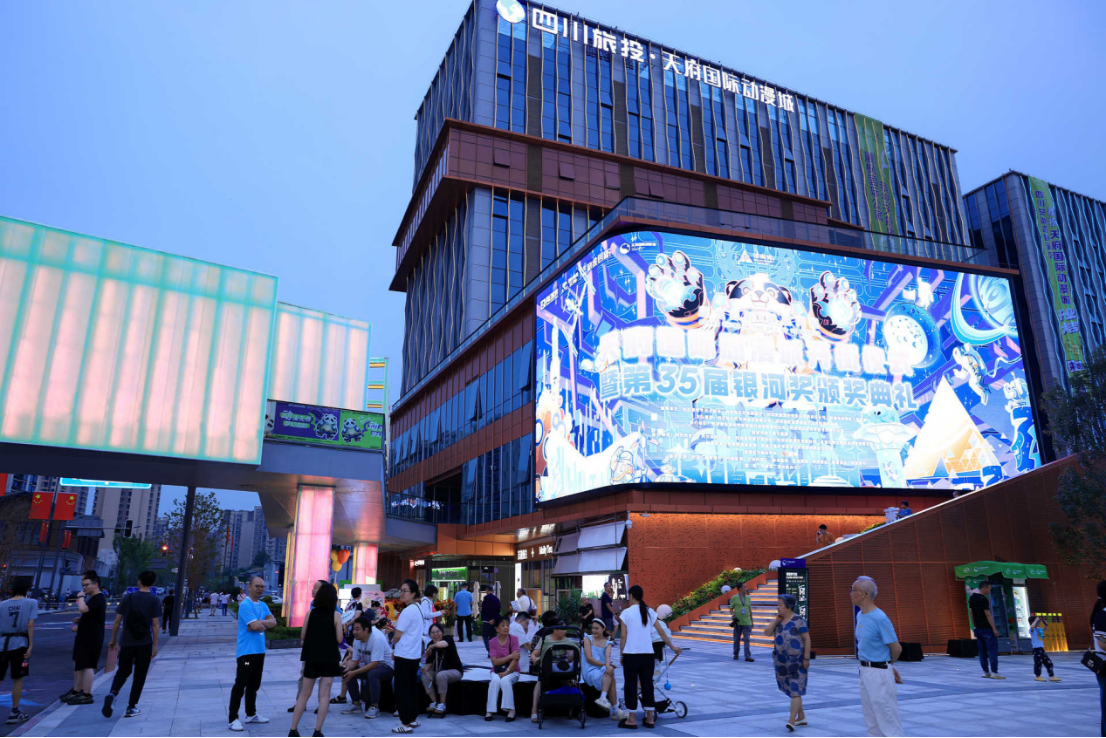 開街儀式當晚,由四川省科學技術協(xié)會指導,四川科幻世界雜志社有限公司和四川旅投旅游創(chuàng)新開發(fā)有限責任公司主辦的第35屆銀河獎頒獎典禮在天府國際動漫城璀璨上演。活動云集王晉康、王紅衛(wèi)、謝云寧、魯般、嚴曦等業(yè)界重磅嘉賓,中國科幻領軍人物劉慈欣也自2023年成都世界科幻大會之后,再次空降中國科幻之都成都。